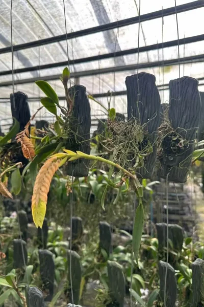 Bulbophyllum occultum is a rare and fascinating orchid species known for its unique flowers and compact growth. This plant thrives in warm, humid conditions with good air circulation, making it a perfect addition to any orchid collection. With its unusual blooms and easy-care nature, it’s a must-have for Bulbophyllum enthusiasts.