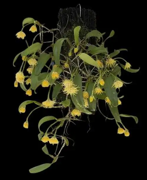A delightful species prized for its charming clusters of fragrant flowers, Bulbophyllum odoratissimum is a must-have for orchid collectors. This compact-growing plant produces creamy-yellow blooms with a pleasant scent, making it a standout addition to any collection.