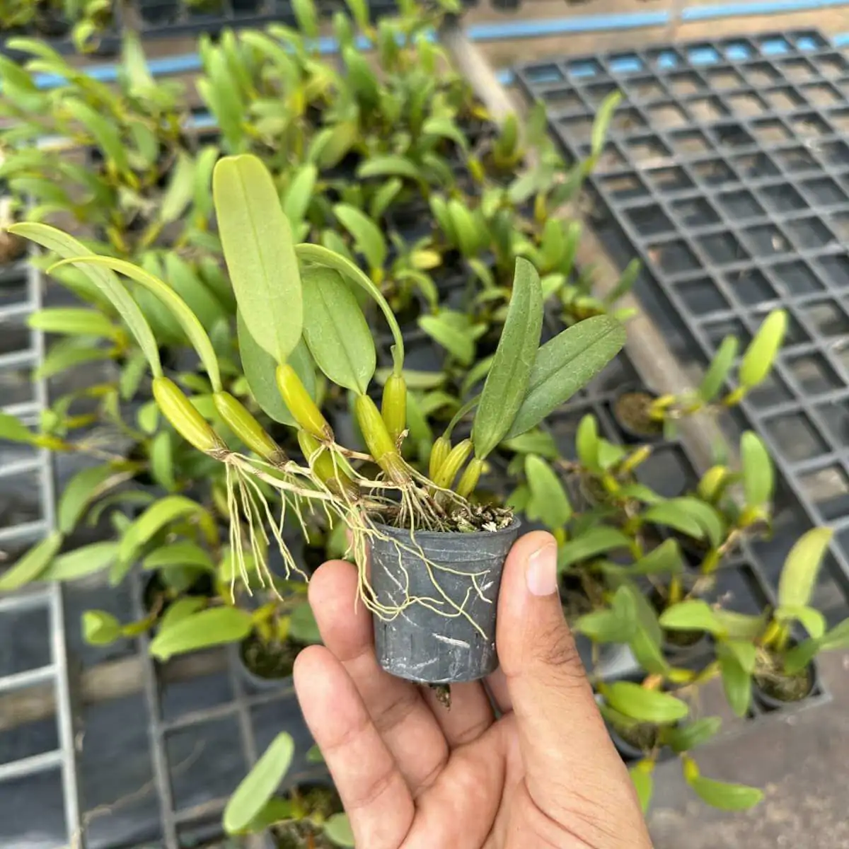 • Care Tips: Prefers intermediate to warm temperatures, high humidity, and moderate light. Keep the medium slightly moist and ensure good air circulation.