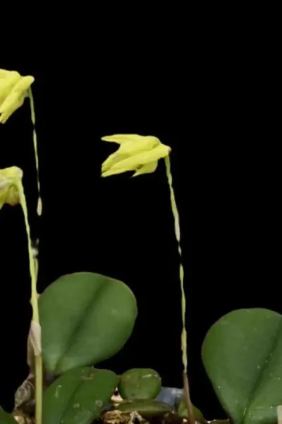 When it’s time to flower, this orchid shows off its charm in the spring, summer, and fall. The flowers are small and cozy, hanging out together at the top of a thin stem that stands taller than the leaf.