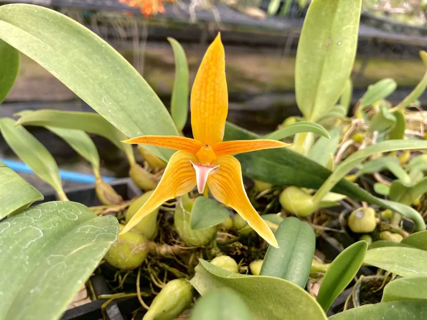 Bulbophyllum smitinandii, a rare and fascinating orchid species prized for its unique floral structure and compact growth. This plant features thick, leathery leaves and produces striking blooms that are a true collector’s delight.