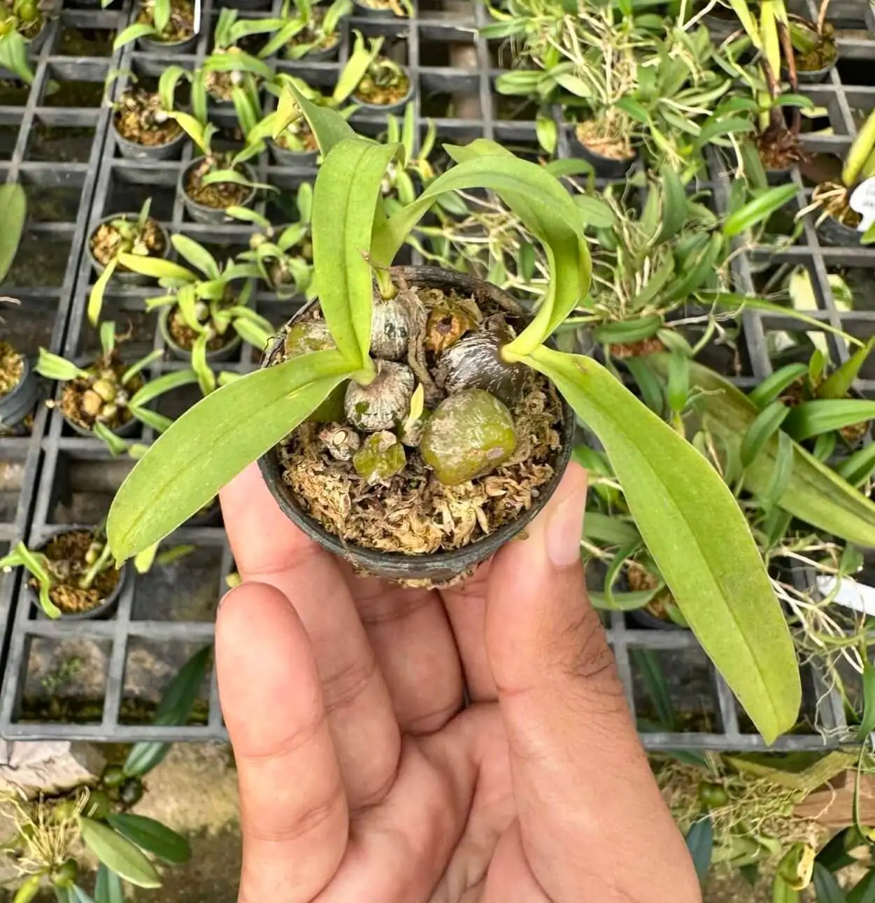 Bulbophyllum tripaleum is a captivating orchid species known for its unusual and exotic flowers. This orchid displays intricate, spider-like blooms with striking colors and unique petal structures, making it a standout piece for collectors. Thriving in humid conditions with filtered light, Bulbophyllum tripaleum enjoys regular watering and excellent airflow. Perfect for indoor orchid enthusiasts, it adds a touch of mystery and beauty to any collection with its fascinating blooms and low-maintenance care.