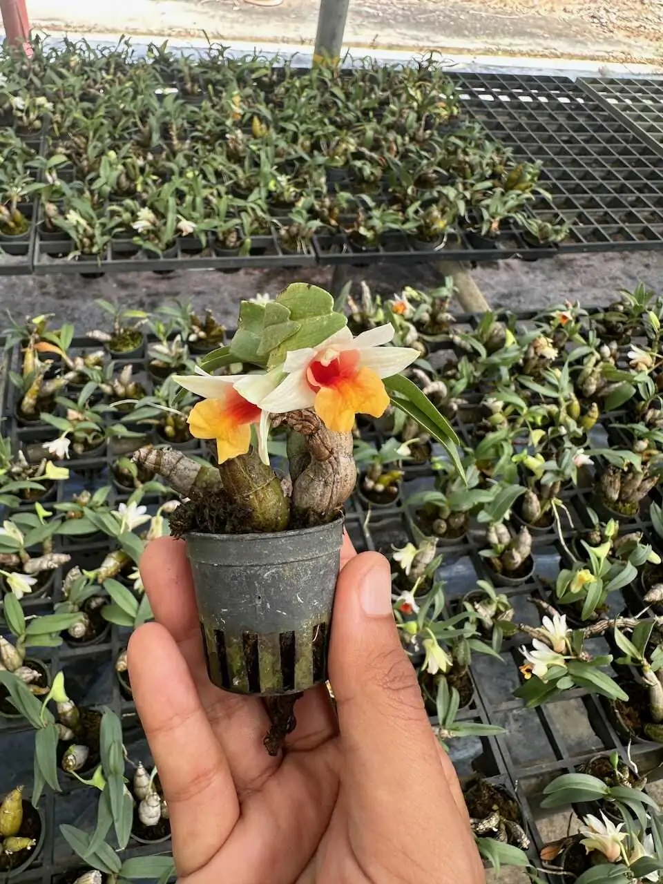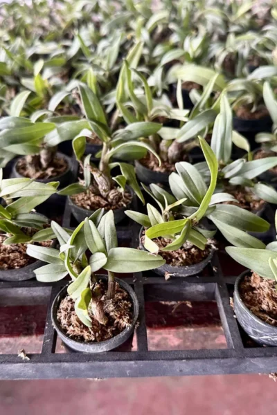 Dendrobium bellatulum is highly valued for its balance of beauty and fragrance in a compact form. Its relatively large, soft white flowers contrast beautifully with its small plant size, making it perfect for collectors with limited space. As a blooming-size plant, it is mature and capable of flowering under proper care, offering a rewarding growing experience.