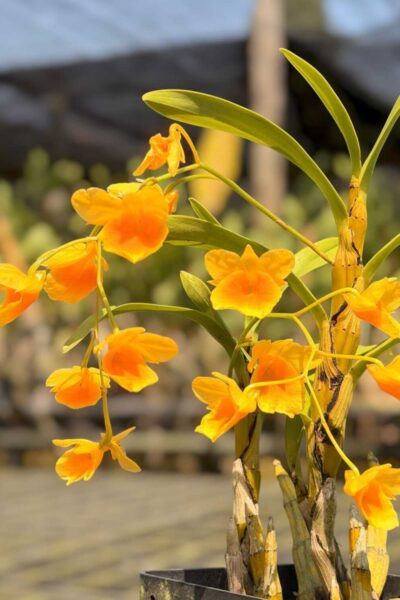 Dendrobium braianense is a highly attractive species from the Formosae group, well known for its white flowers and distinctive hairy canes. The plant produces arching flower spikes with multiple blooms, usually during the cooler season.