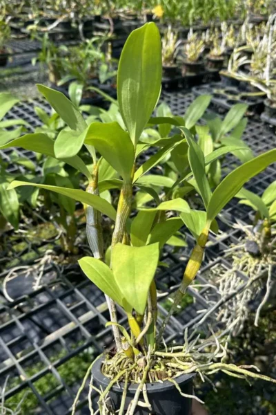 Dendrobium densiflorum is a breathtaking orchid species admired for its dense, cascading clusters of golden-yellow flowers with fluffy, deep orange lips. This full-size plant is well-established and ready to thrive in your collection.