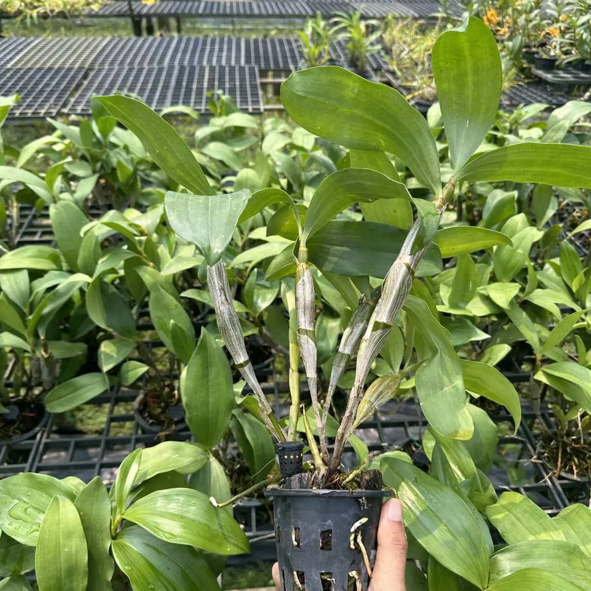 Dendrobium farmeri var. alba Add a touch of elegance and rarity to your orchid collection Dendrobiumi var. alba a beautiful white-flowered version of the popular Dendrobium farmeri species. Native to Southeast Asia this orchid is loved for its pure snow-white blooms that grow in dense hanging clusters, creating a breathtaking waterfall effect during its season.