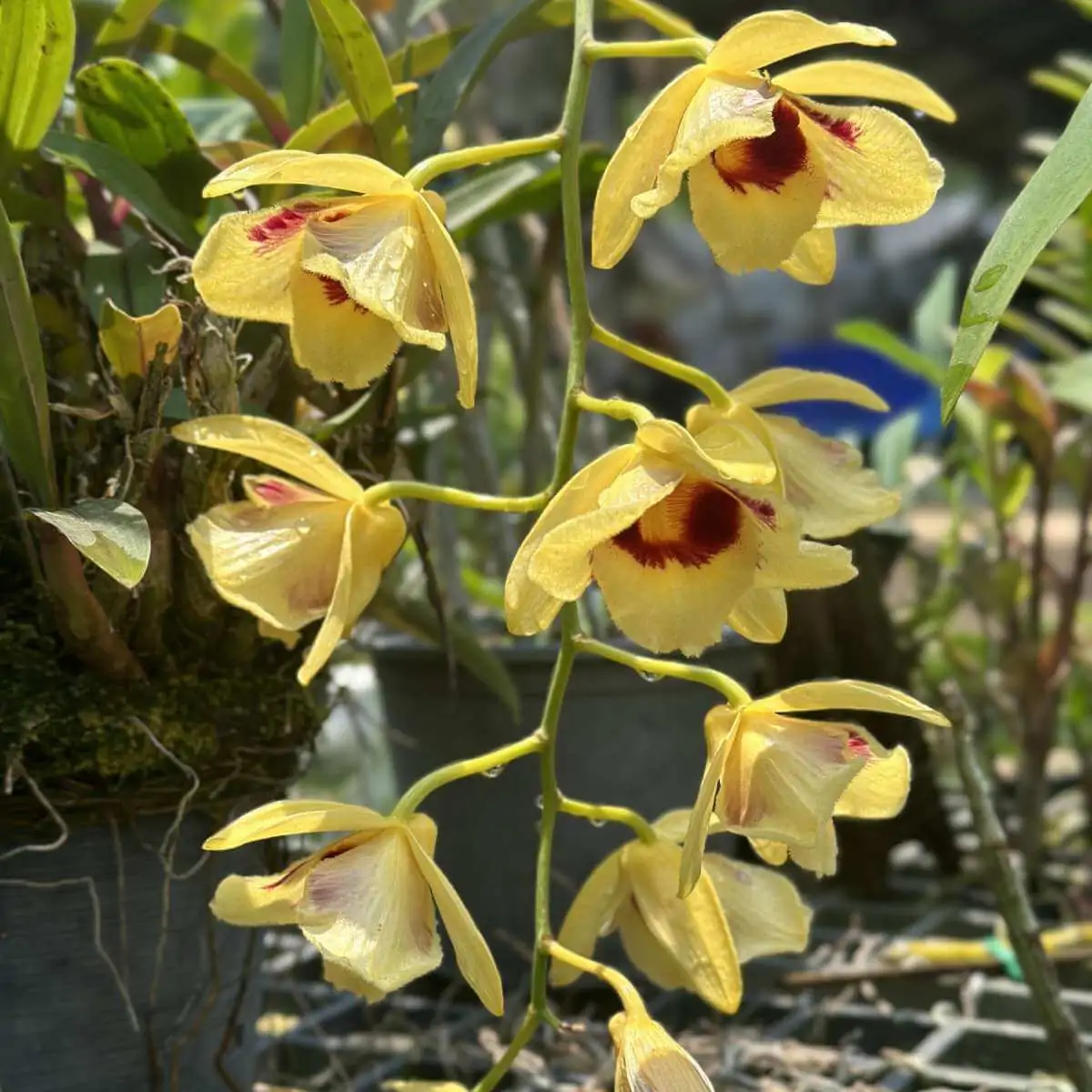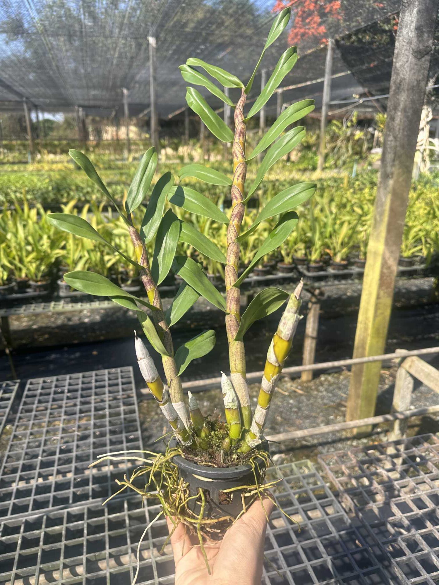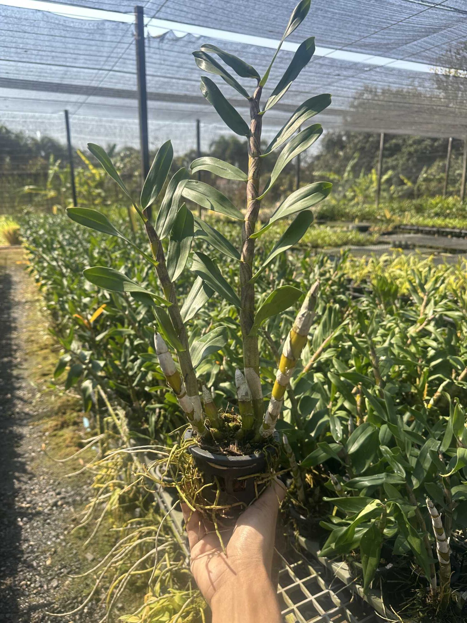 This hybrid exhibits the classic upright Dendrobium growth pattern, producing sturdy canes that store water and nutrients. Mature plants may carry multiple stems, allowing for more impressive flowering displays as the plant continues to develop over time. With proper care, Gatton Sunray is a vigorous grower and responds well to consistent watering, feeding, and adequate light.