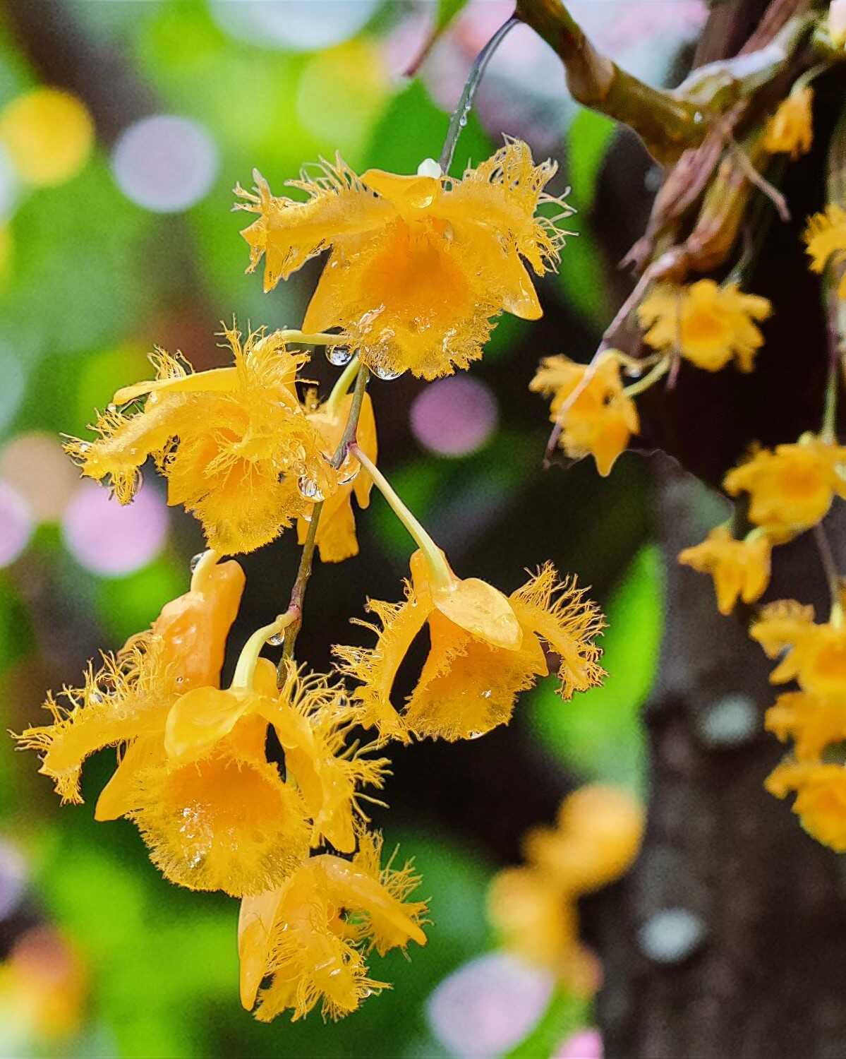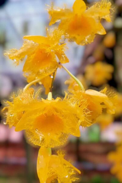A true collector’s favorite, Dendrobium harveyanum is admired for its rich golden-yellow flowers and finely fringed lip that adds a delicate, almost feathery texture. When in bloom, the flowers appear in clusters, creating a warm, luminous display that stands out in any orchid collection.