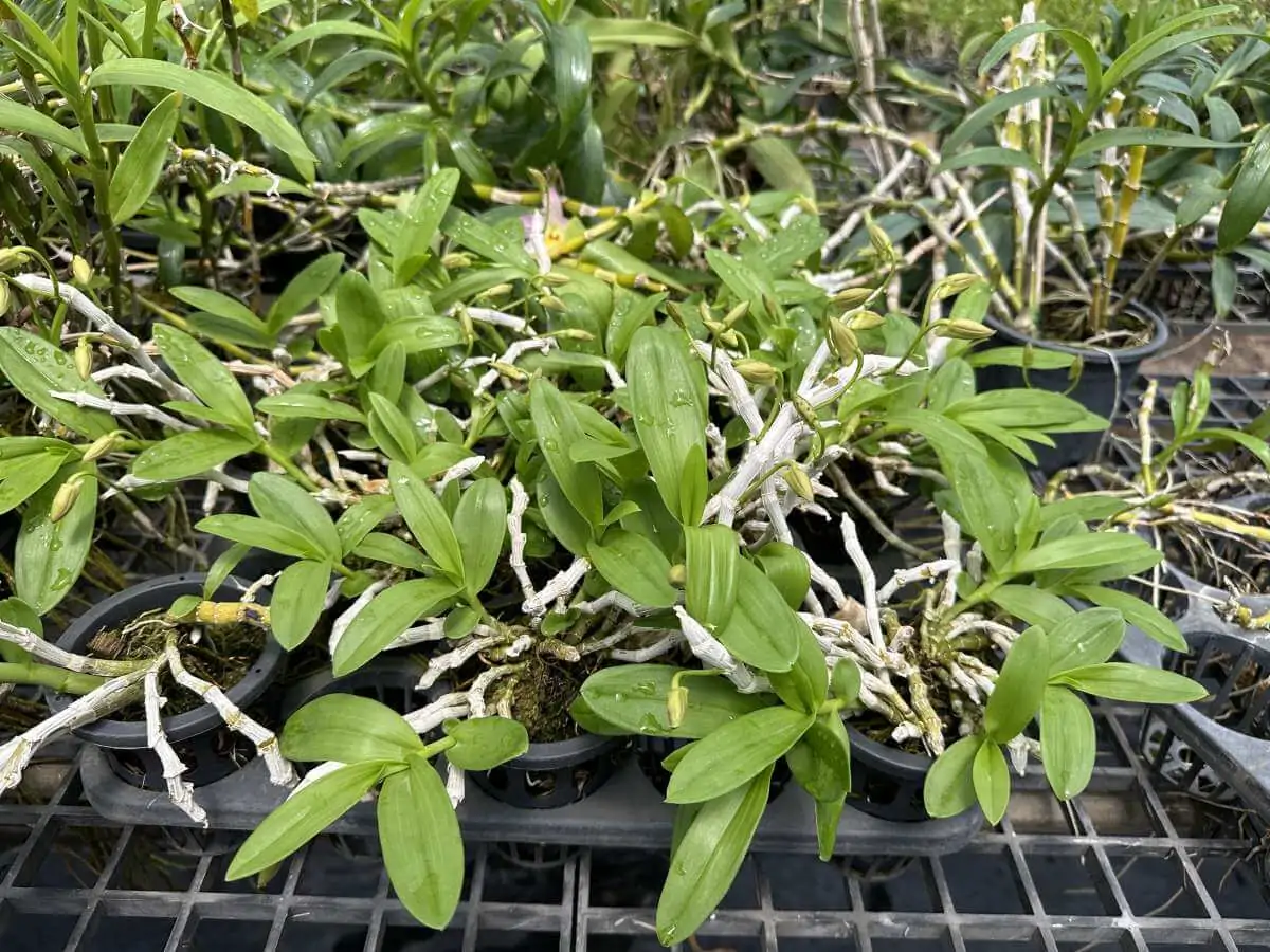 - Compact and Easy Care: This orchid is known for its manageable size and tolerance for warmer temperatures, making it ideal for beginner orchid enthusiasts. (It’s even nicknamed the “hand orchid” due to its finger-like pseudobulbs!)