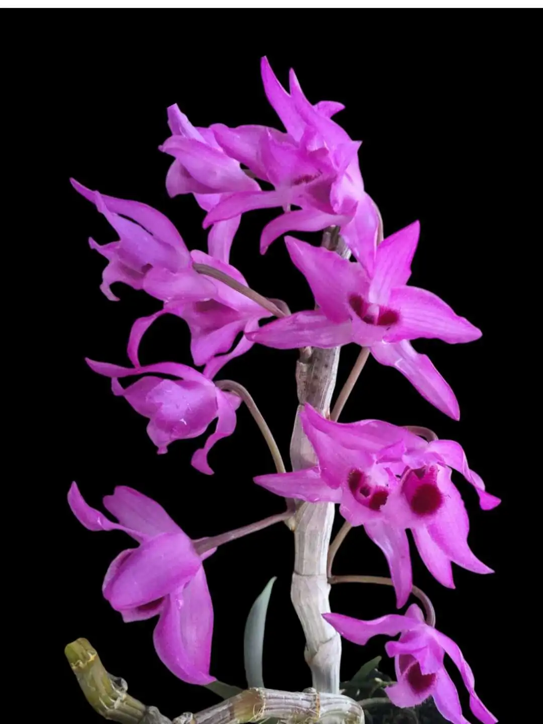Dendrobium parishii is a fragrant orchid species native to Southeast Asia, prized for its beautiful rosy-purple flowers and sweet, fruity scent. The blooms typically appear in spring or early summer, emerging from the nodes of leafless canes.