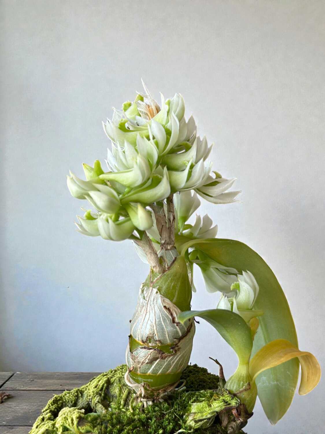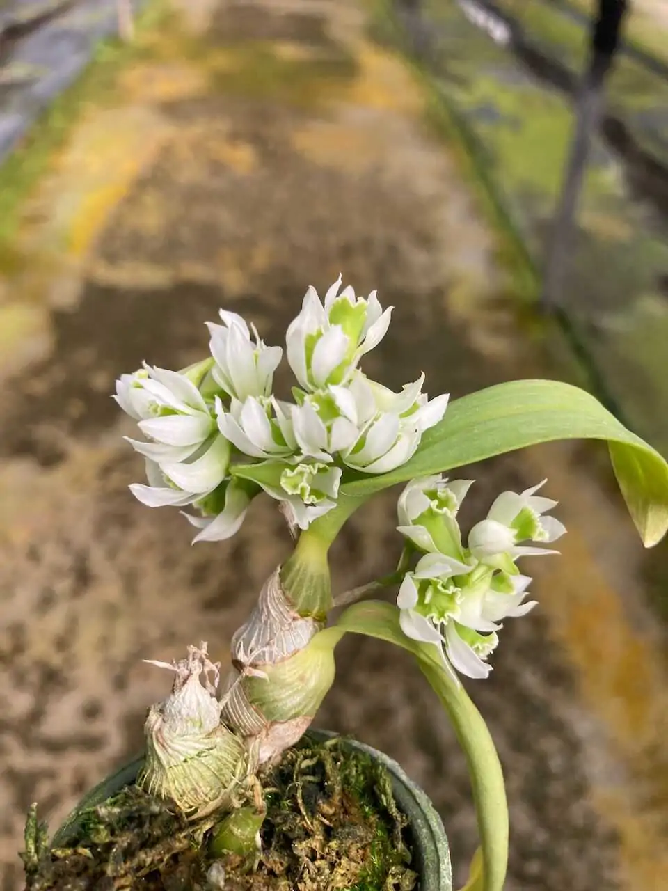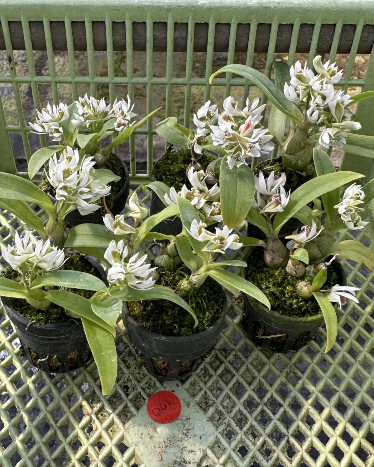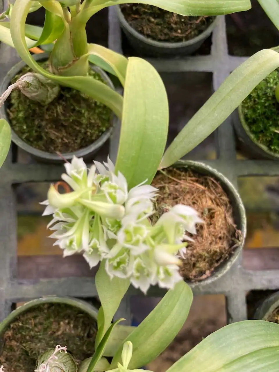 Dendrobium peguanum alba, Alba form of the miniature Dendrobium peguanum species. This seedling is a true gem for orchid collectors who appreciate subtle beauty and compact growth.
