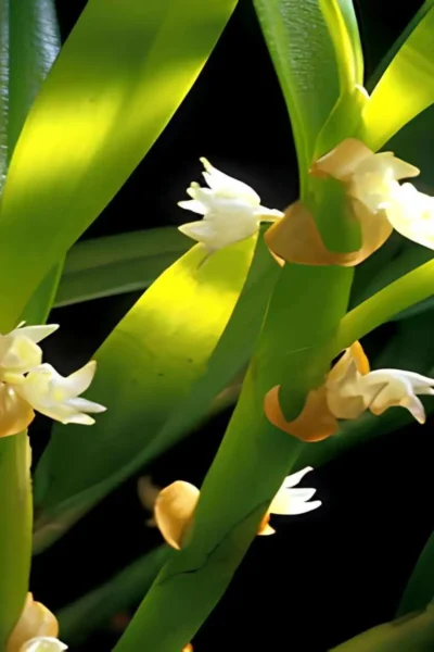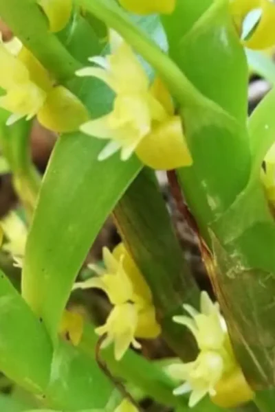 Eria biflora is a small orchid that grows on trees in the mountains of Southeast Asia. It can be found in places like India, Nepal, Myanmar, and Malaysia. This orchid is easy to take care of, making it great for beginners. Plus, its flowers are beautiful!