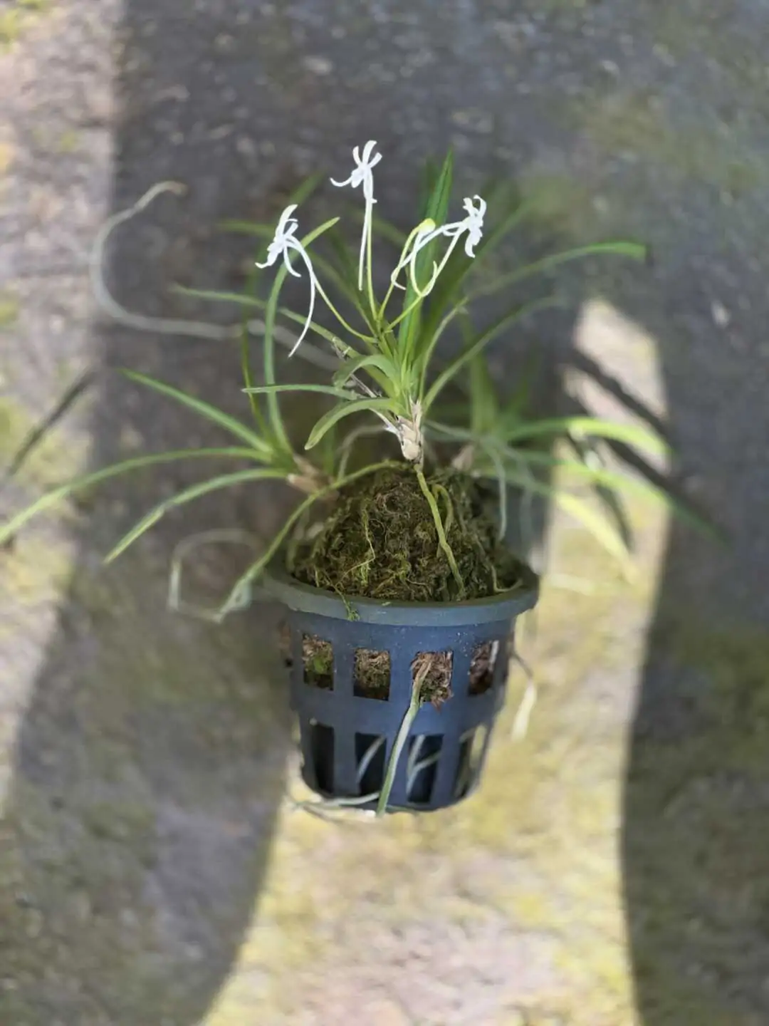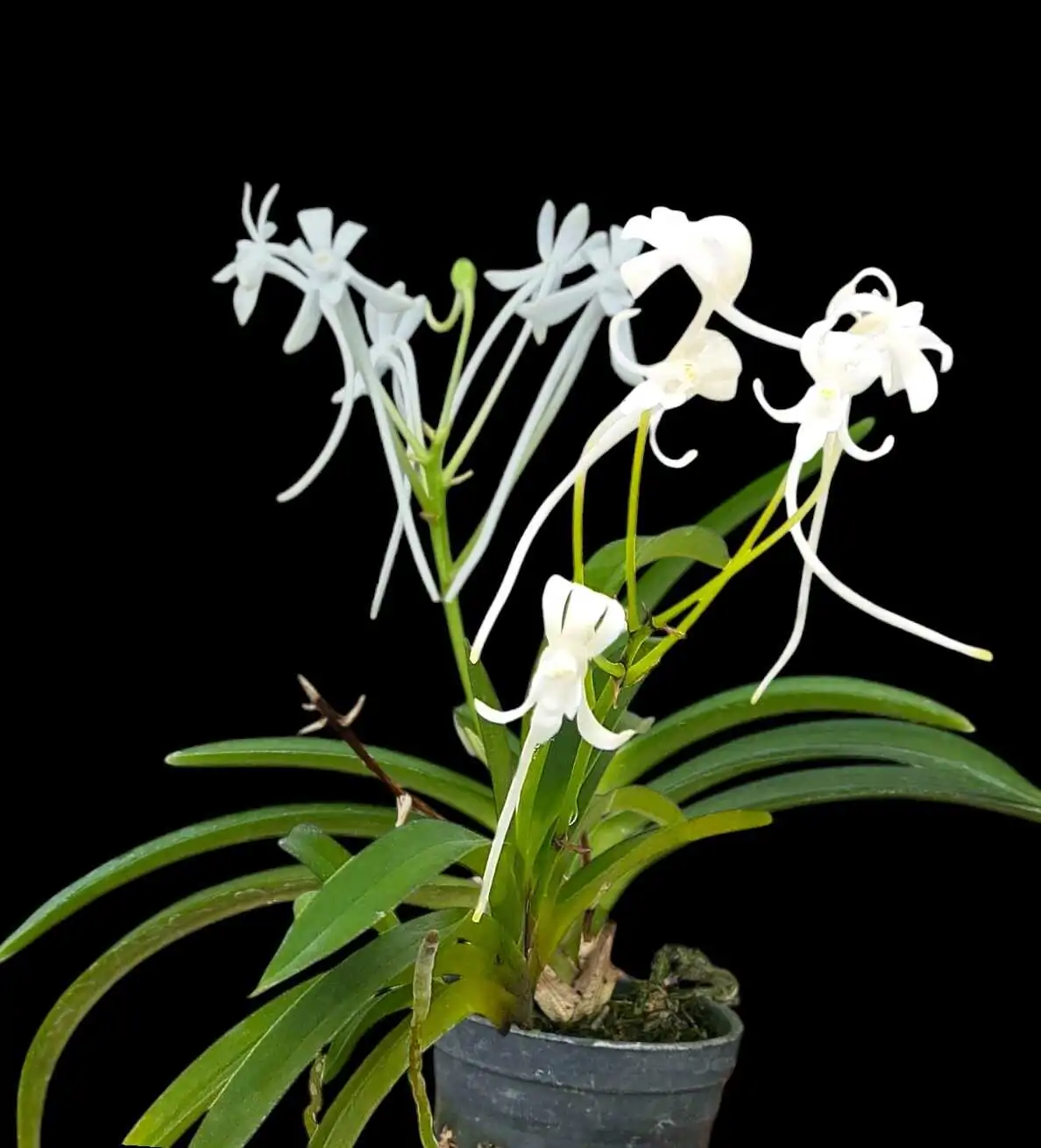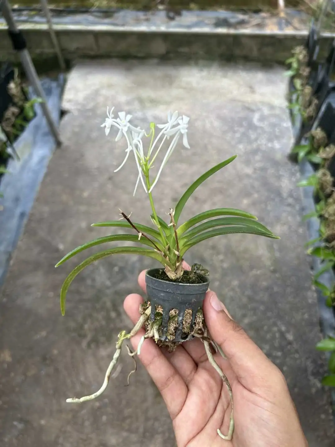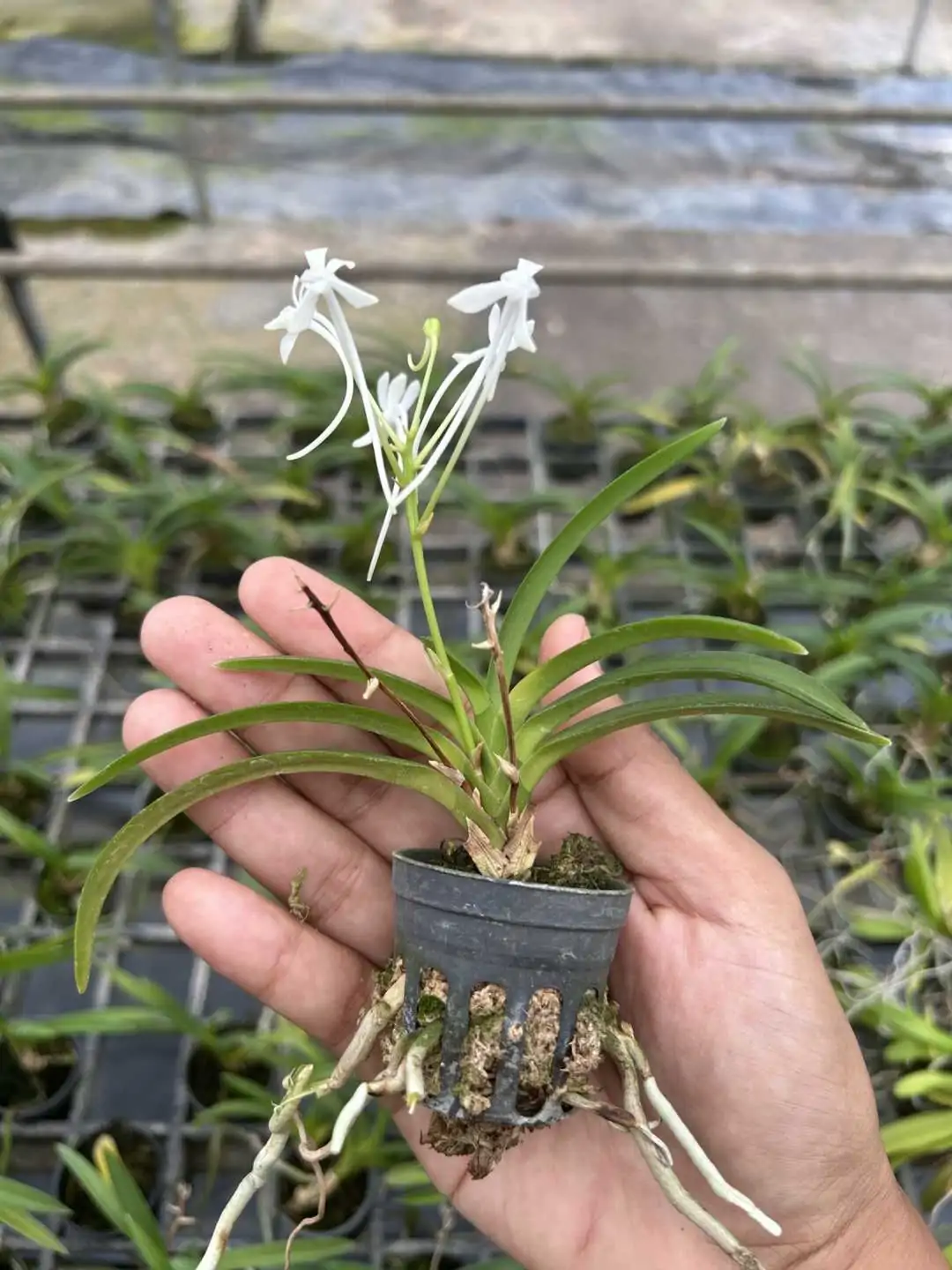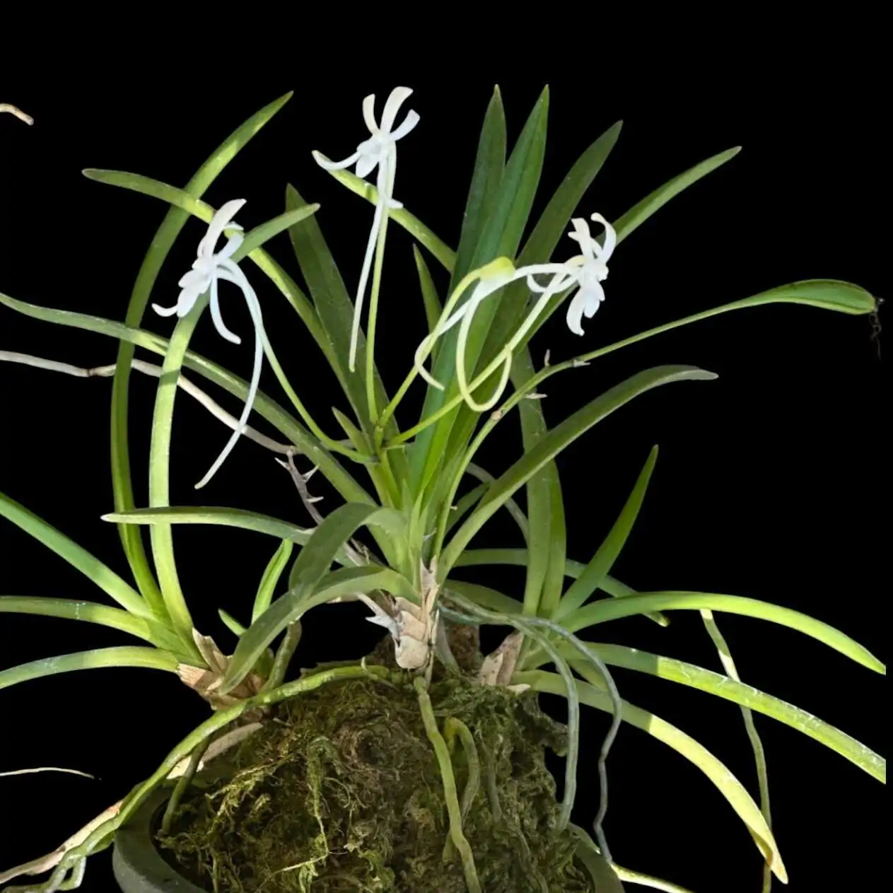 Neofinetia falcata, also known as the “Samurai Orchid,” is a charming miniature orchid native to Japan and Korea. This variety is appreciated for its graceful fan-shaped foliage and sweetly fragrant white flowers that bloom in summer, often releasing their scent in the evening.