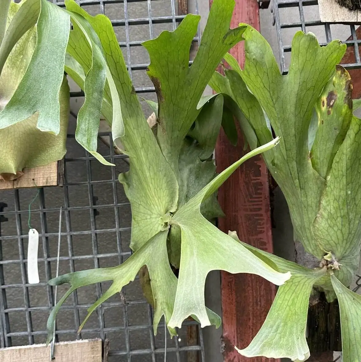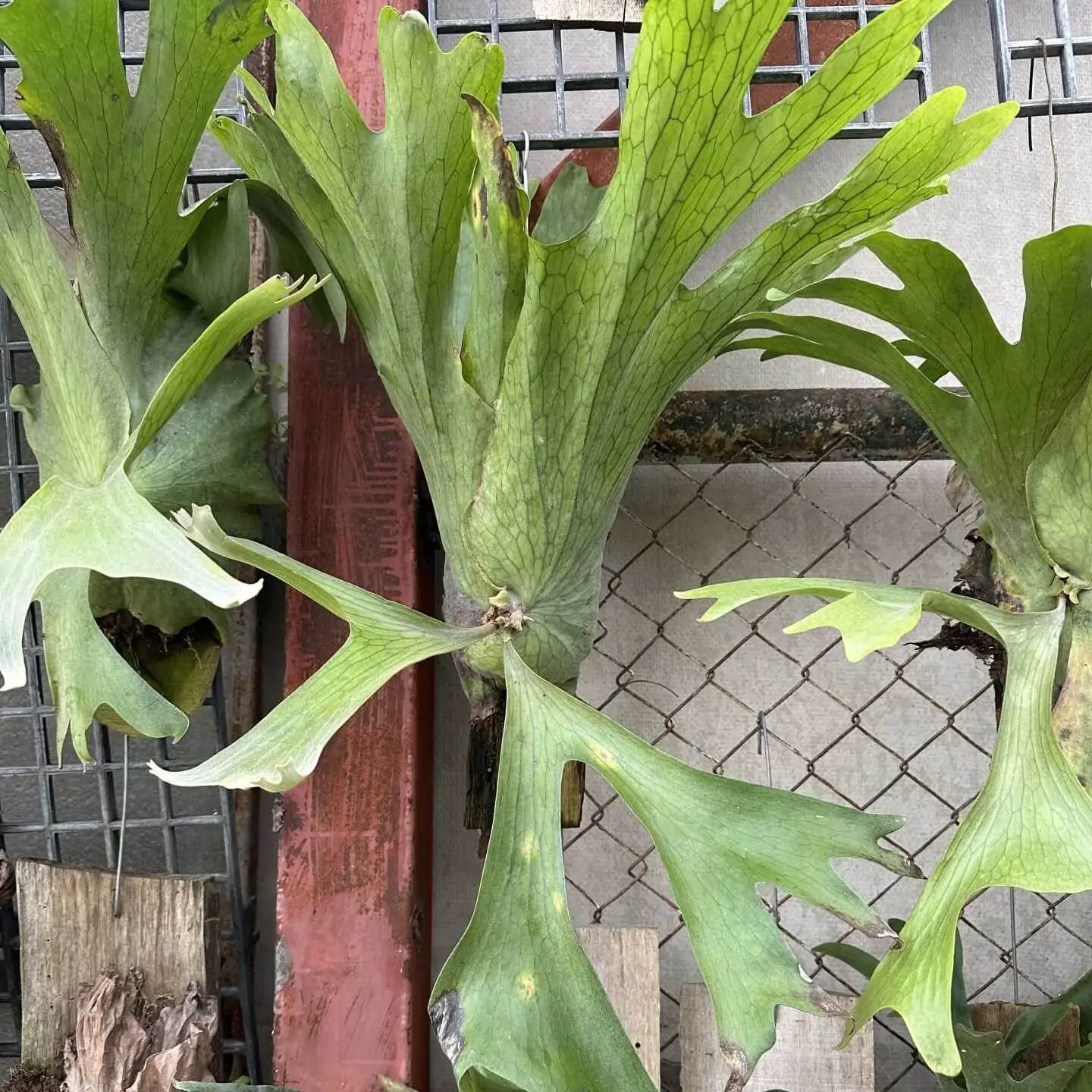 Platycerium holtumii, a stunning staghorn fern known for its unique, antler-like fronds. This eye-catching plant not only enhances your decor but also purifies the air, making it a perfect addition to any space.