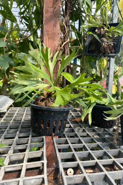 A stunning hybrid staghorn fern known for its elegant, elongated thin leaves that radiate in a shield-like formation. This unique species thrives in bright, indirect light and high humidity, making it a striking choice for mounted displays or hanging planters. Easy to care for and visually captivating, it’s perfect for any plant enthusiast looking to add a tropical touch to their collection.