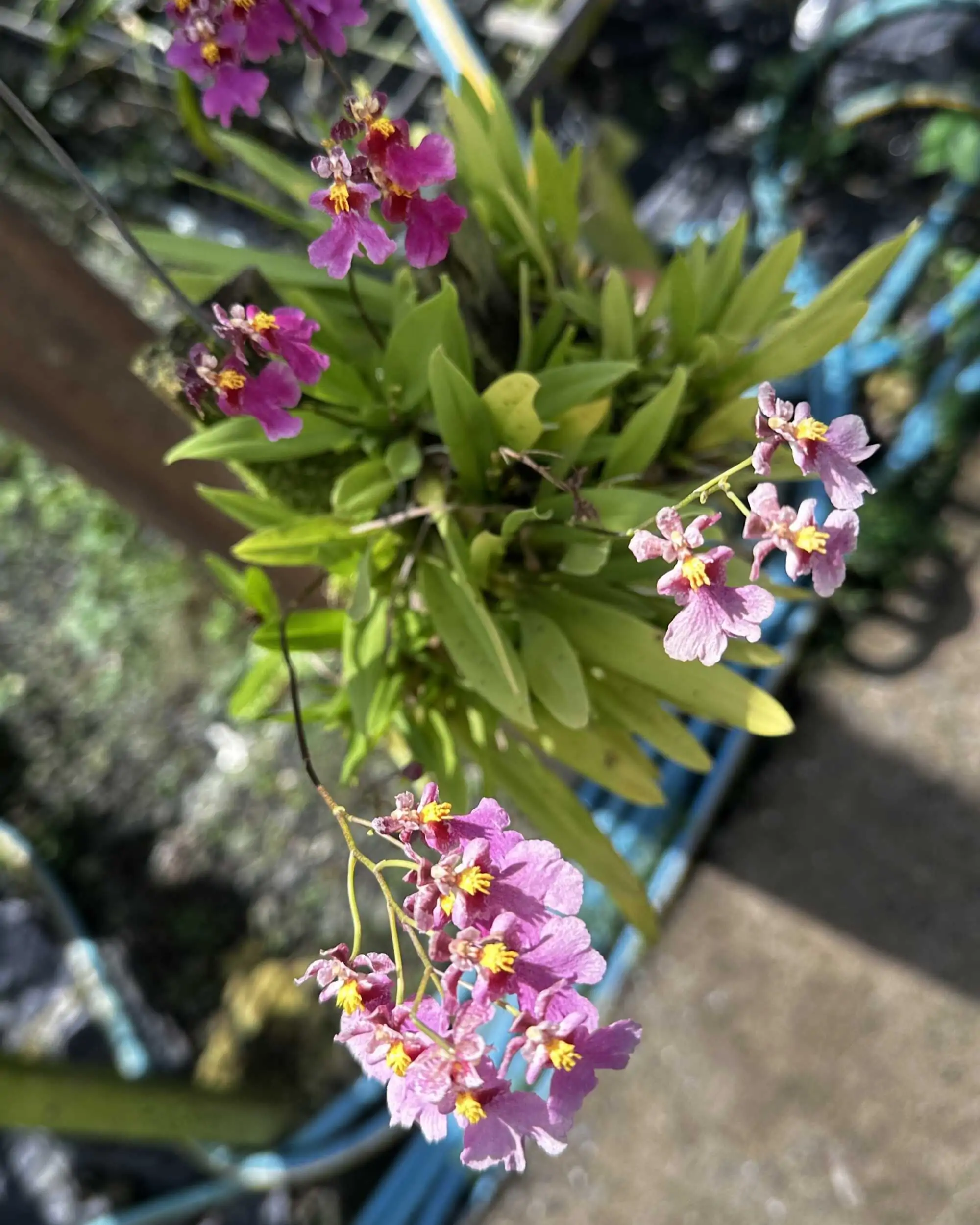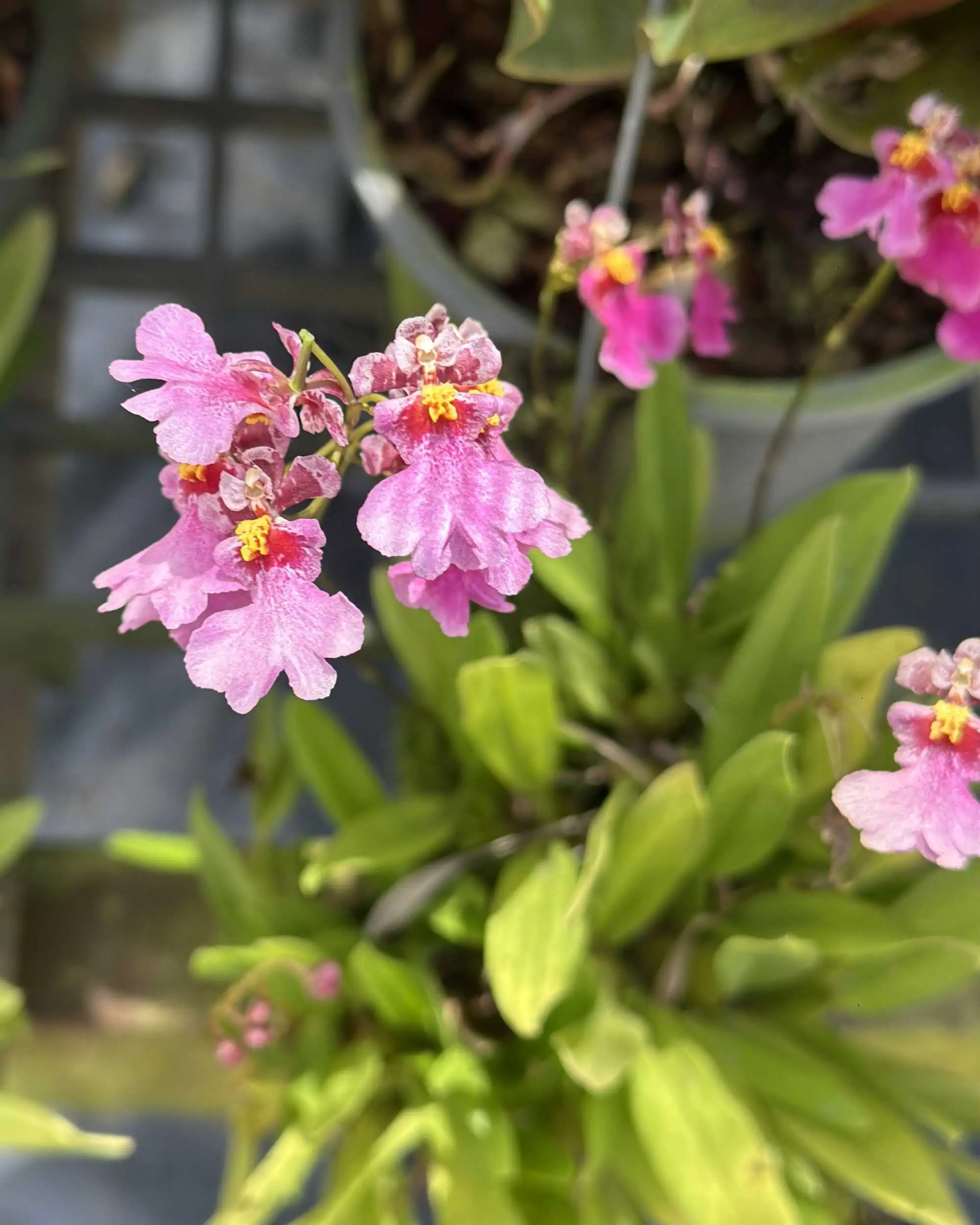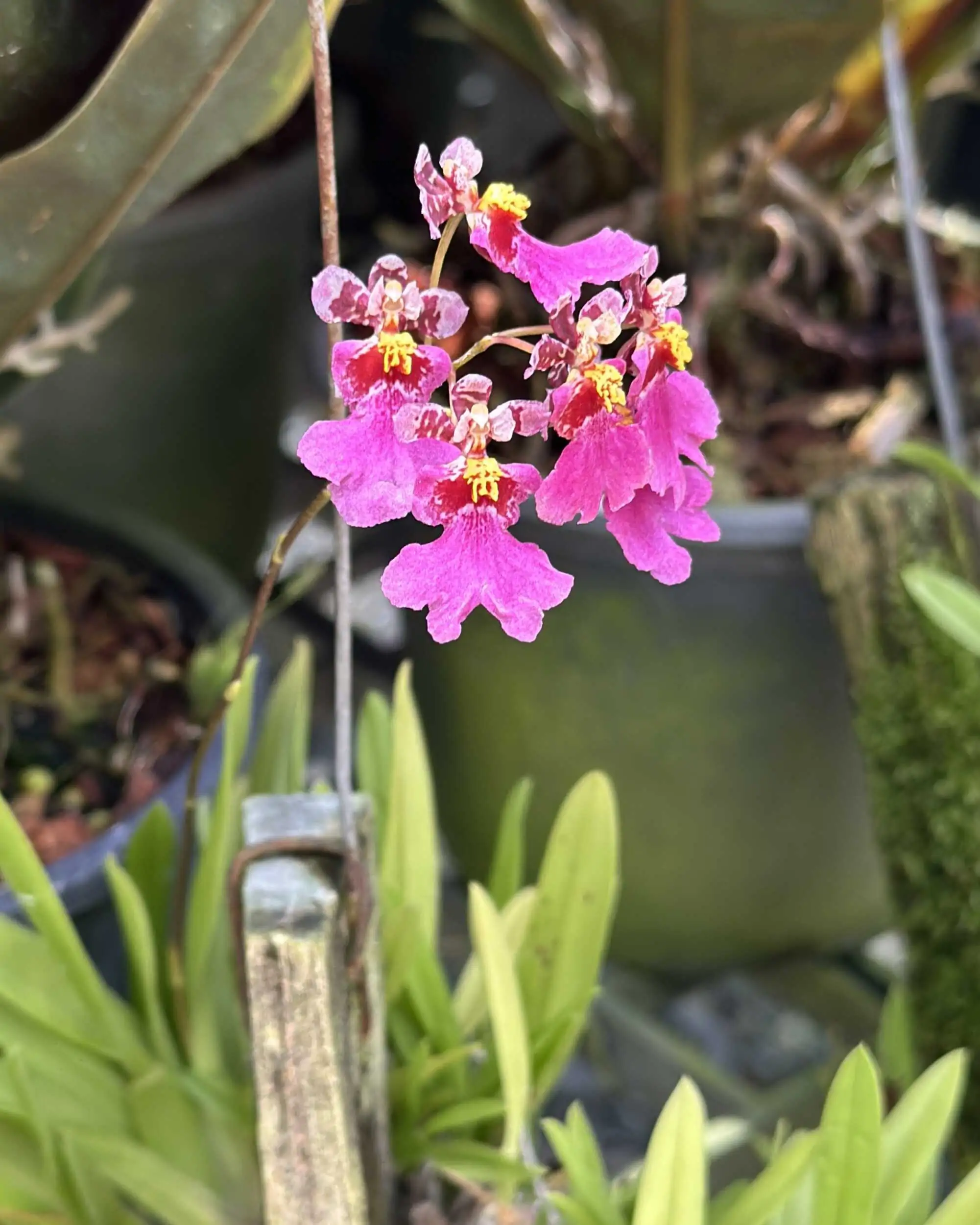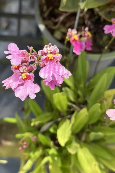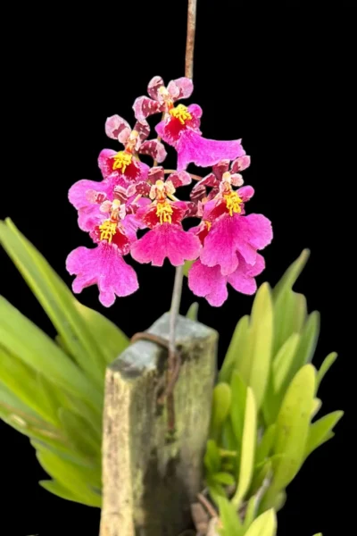 A charming miniature Tolumnia (formerly Equitant Oncidium) with bright pink, frilled blooms. Compact, fast-growing, and perfect for small spaces or growers who love frequent flowers on tiny plants.