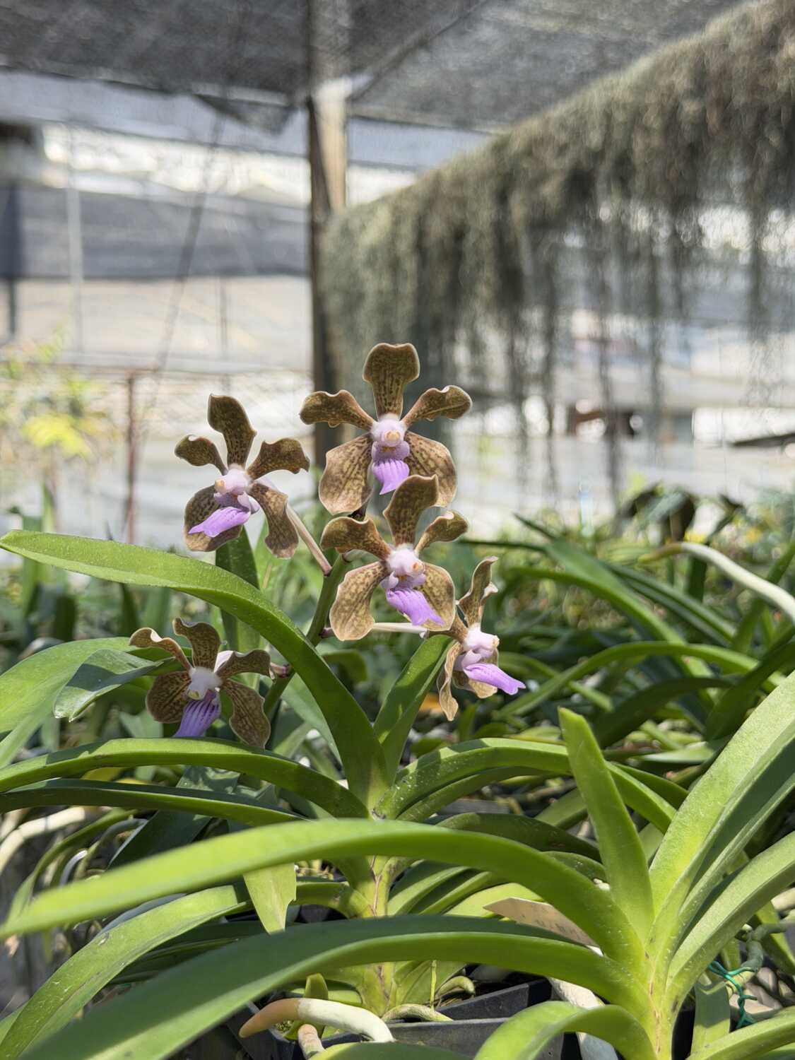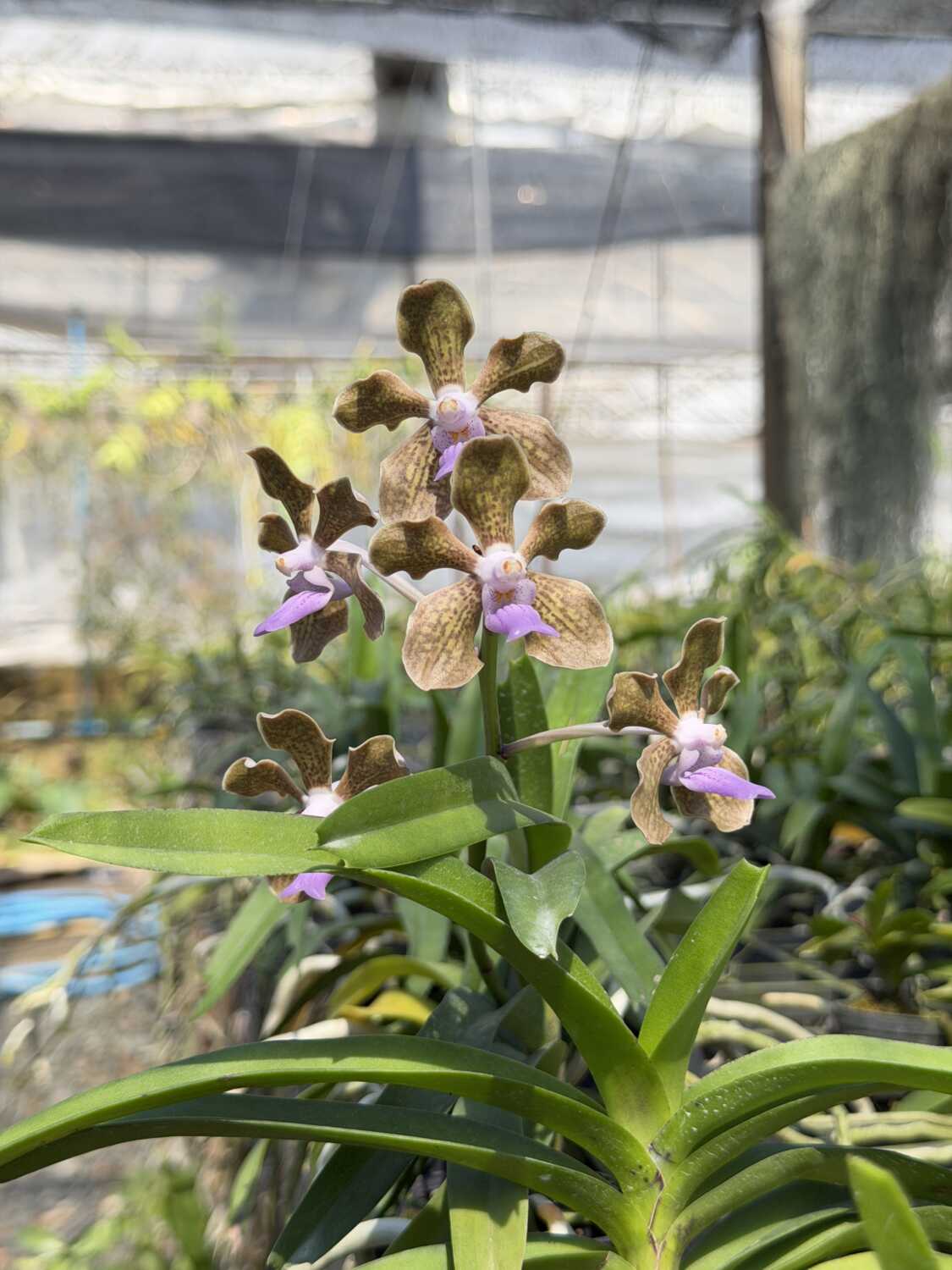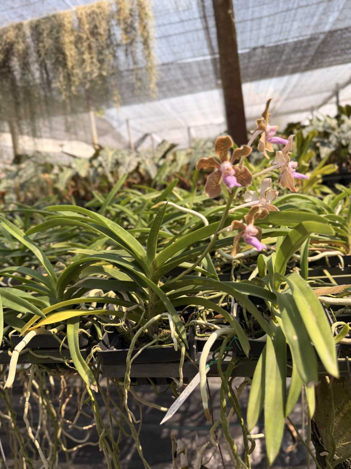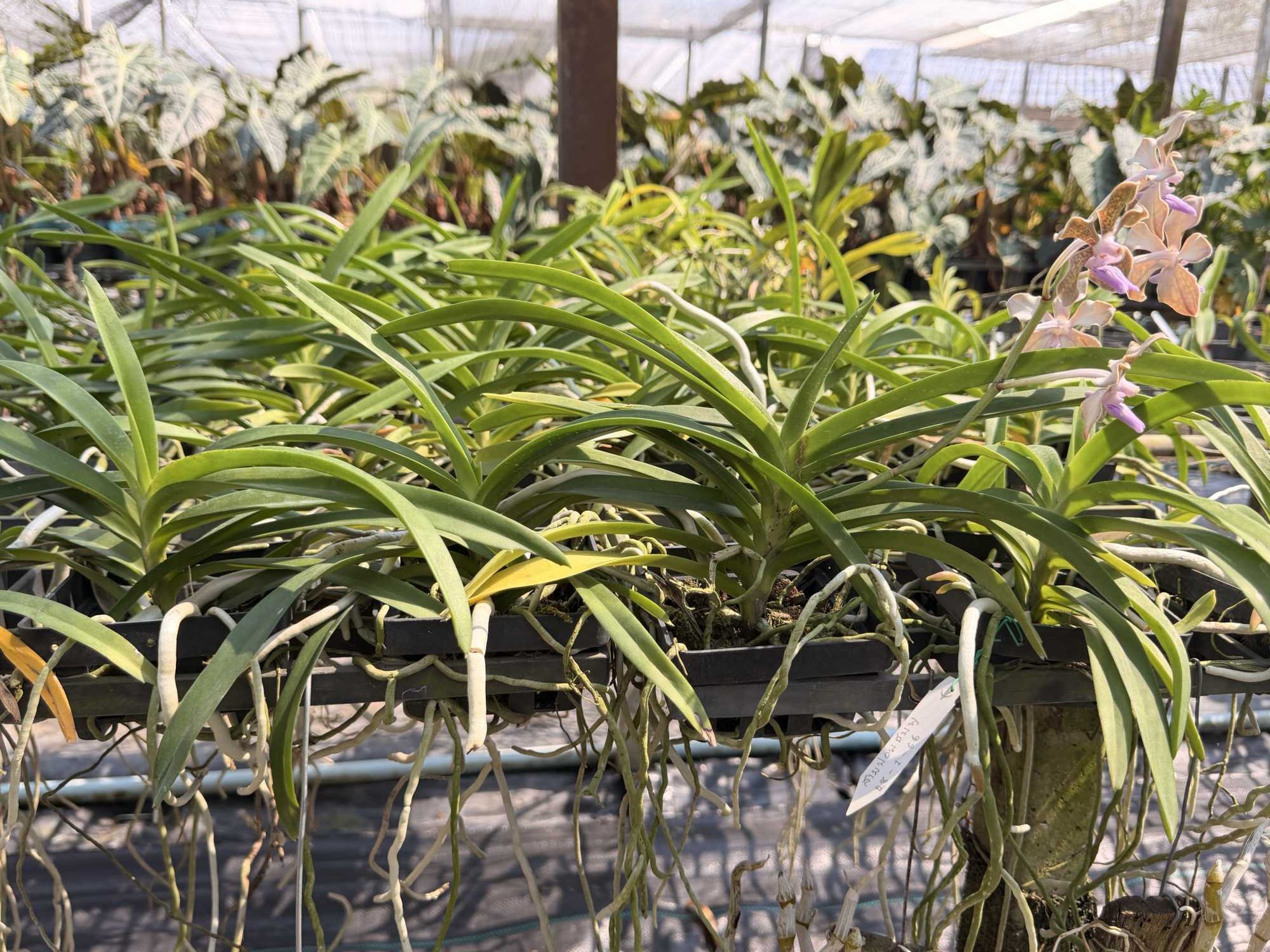 Vanda tessellata is a classic species orchid admired for its distinctive, mosaic-patterned flowers and elegant form. This plant is offered at first bloom stage, meaning it has just reached flowering maturity—an exciting milestone for collectors who enjoy watching a plant develop from its earliest blooms.