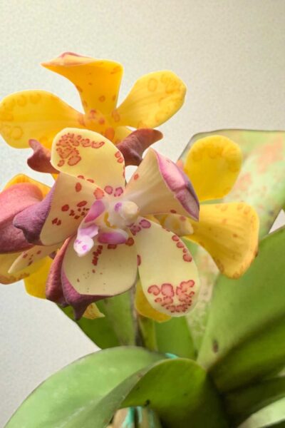 Vandopsis gigantea is a striking monopodial orchid prized for its bold foliage and large, long-lasting flowers. This plant is offered at near blooming size, making it an excellent choice for collectors who want impressive results without the long wait.