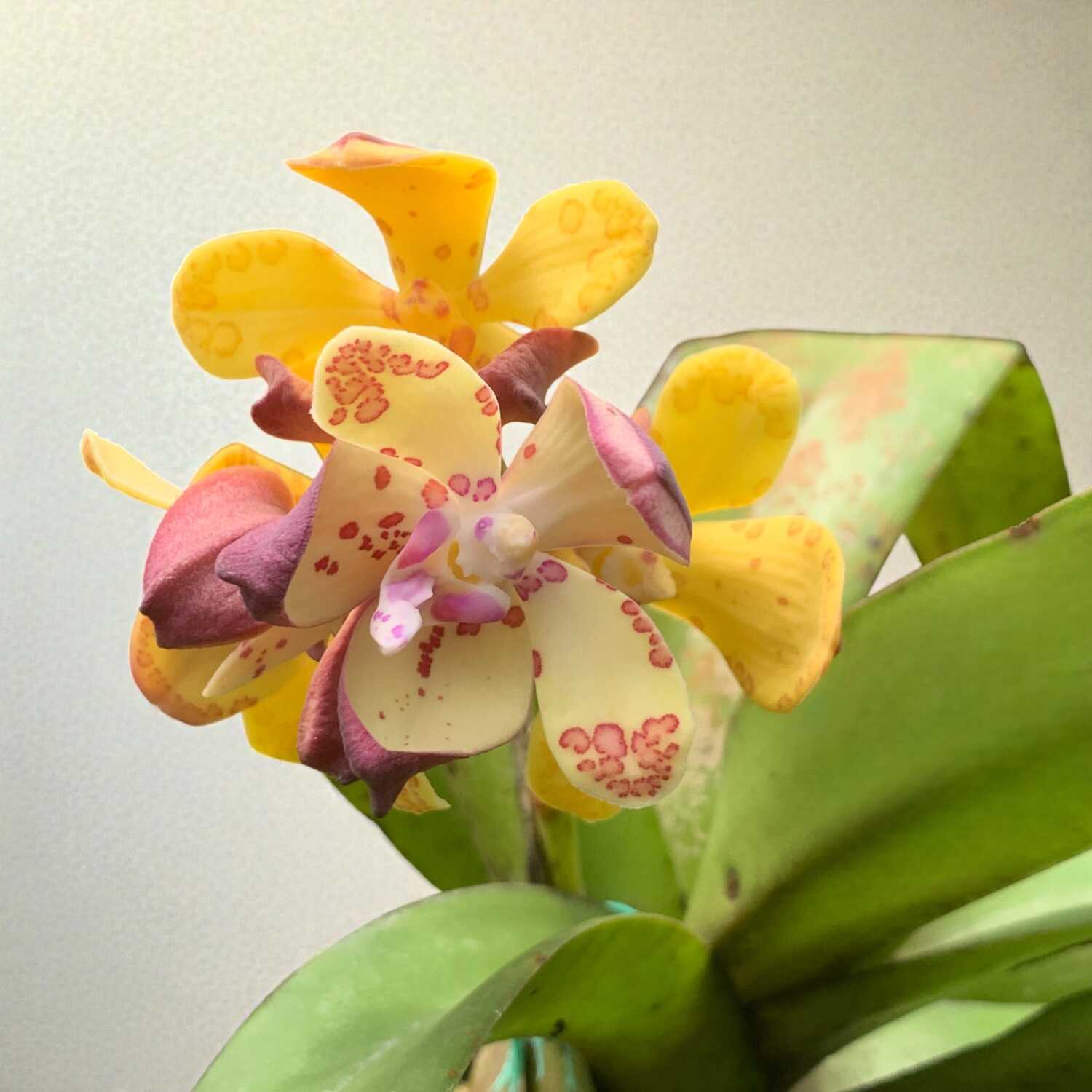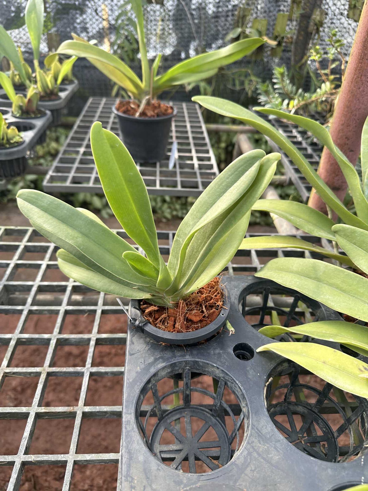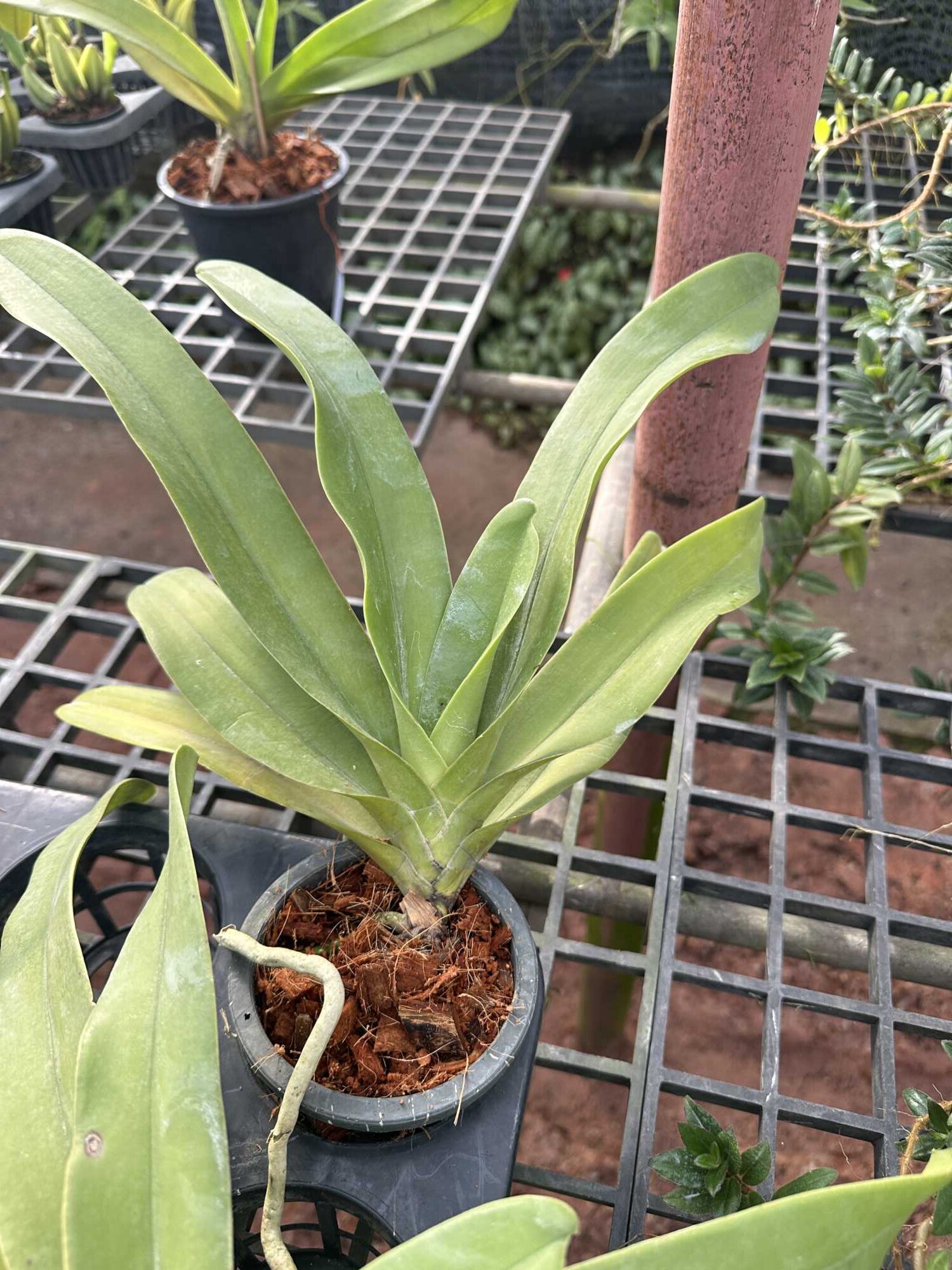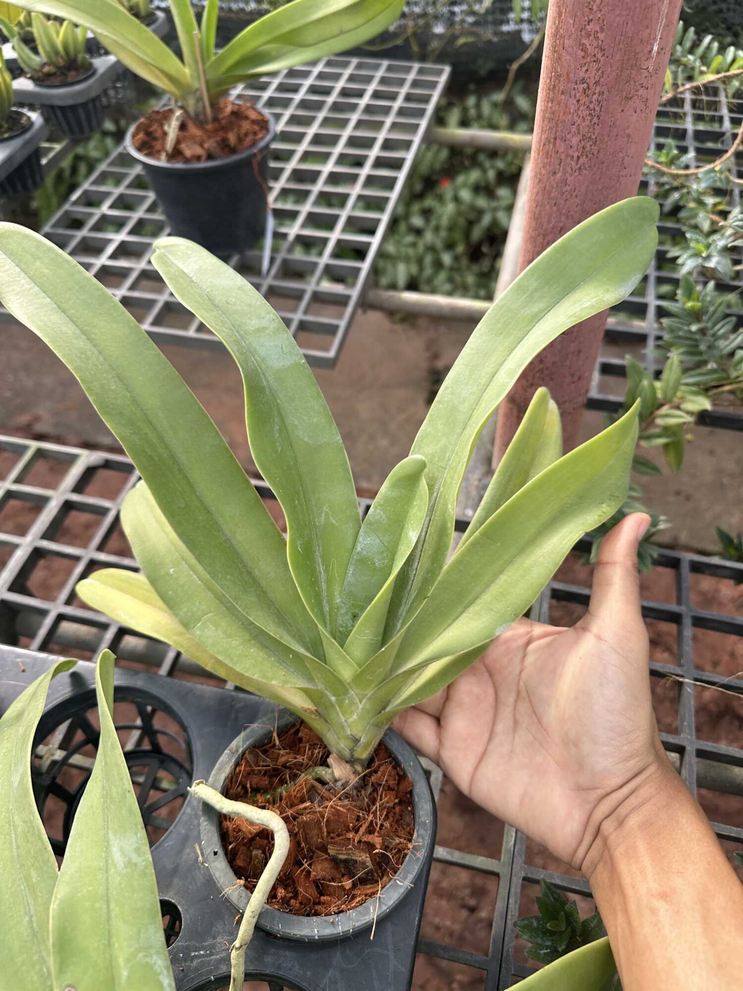 Vandopsis gigantea is a striking monopodial orchid prized for its bold foliage and large, long-lasting flowers. This plant is offered at near blooming size, making it an excellent choice for collectors who want impressive results without the long wait.