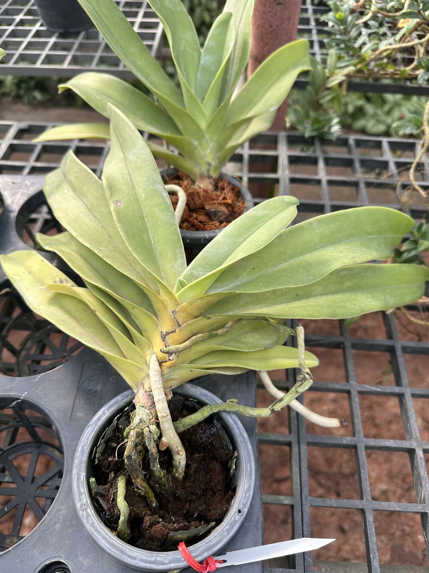 The medium-sized plant is healthy, well-established, and carefully grown to ensure strong roots and stable growth. When mature, Vandopsis gigantea produces thick, upright leaves and spectacular flower spikes with large blooms, making it a standout addition to any orchid collection.