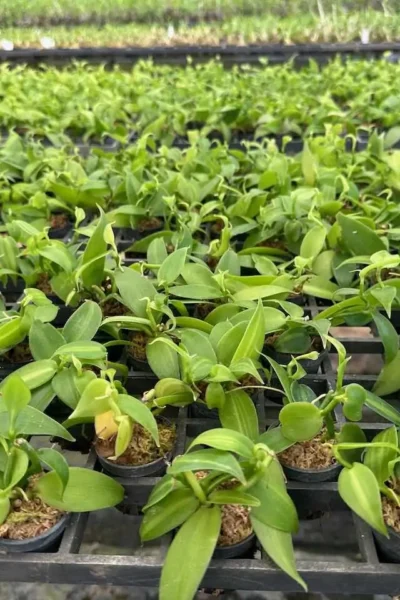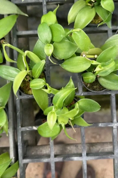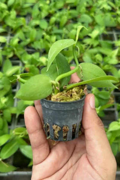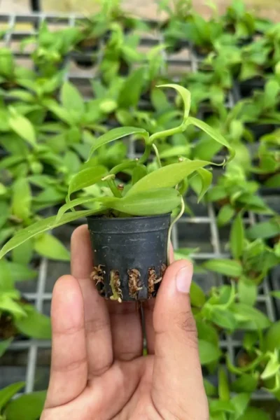 Vanilla planifolia Tiny Form is a charming orchid ideal for collectors and enthusiasts seeking a compact, blooming-size plant. This tiny form features delicate, climbing vines with fragrant flowers when in bloom. Perfect for small pots, terrariums, or as part of an indoor orchid display, it thrives in bright, indirect light with regular watering and support for its vine growth.